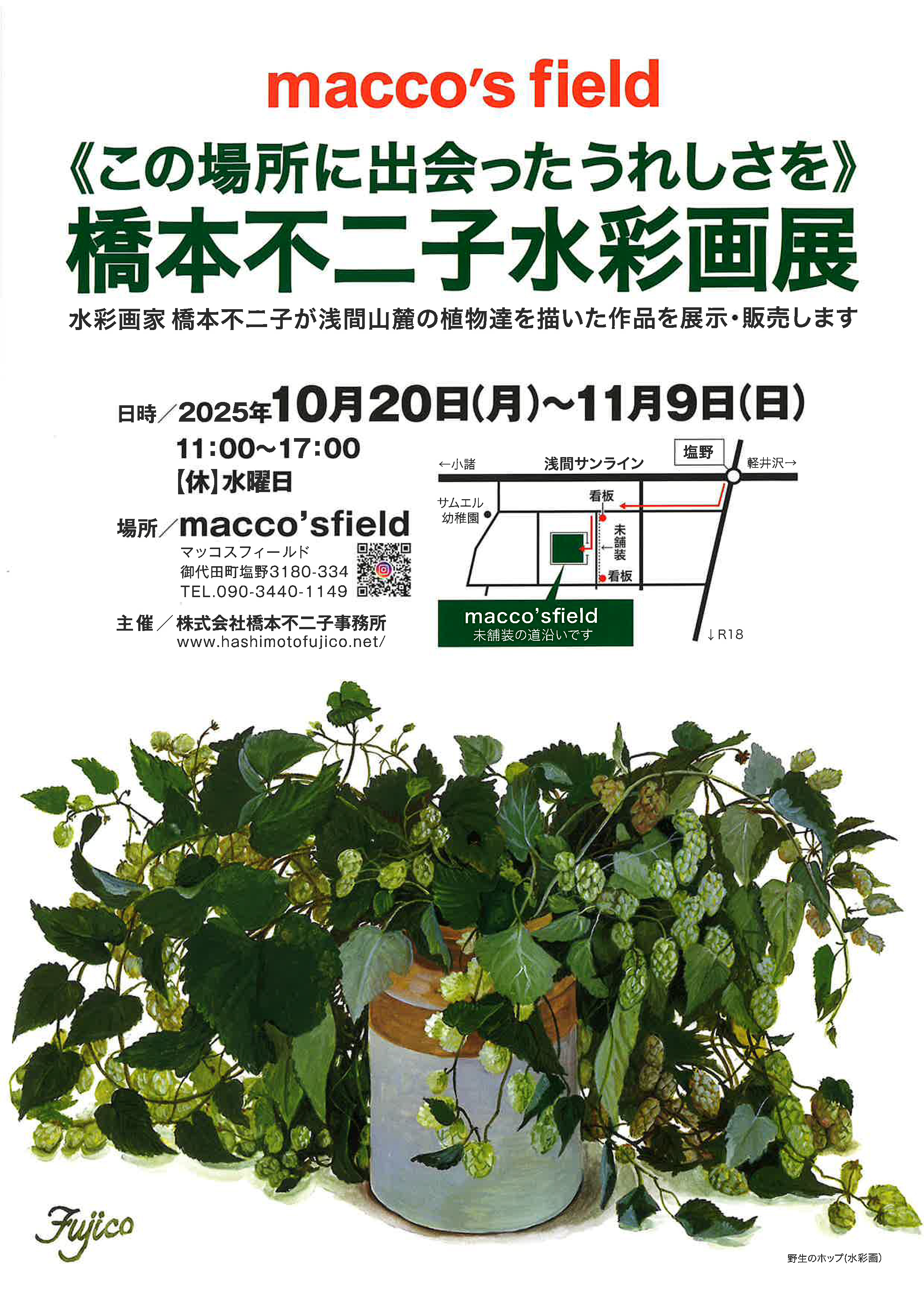 「《この場所に出会ったうれしさを》橋本不二子水彩画展」のご案内です。